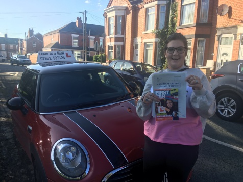 I cannot recommend Kev and Learn in a MINI enough. I had previously had another instructor and completely lost my confidence. It was a year before I felt I wanted to get in a car again. Kev was great. He makes you feel relaxed and explains everything really well. I liked the fact that Kev taught me, not how to pass a test, but how to be safe on the road. I passed first time and am looking forward to having the Pass Plus lessons in the new year.