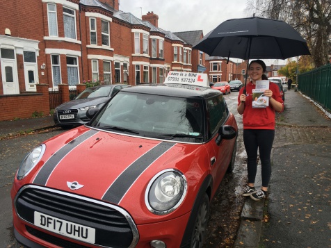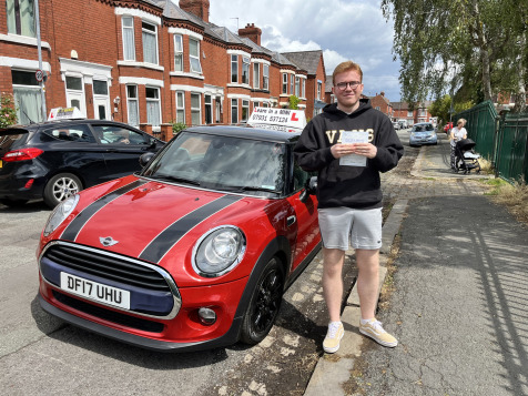 I am proud to say I have had a delightful experience learning to drive with Kev over these past three months. I am very grateful for the patience Kev has given me and I can honestly say I looked forward to every lesson I had with him. Kev is fantastic and very friendly too, which as a result made me feel very comfortable and I was able to ask anything I was uncertain of. He not only prepares you brilliantly for the test but also prepares you for what's really in store once you get onto the roads! I want to thank Kev for all the hard work and especially for the high 5 I received once I had passed my test. It most certainly is a moment that will stay with me for life! I would highly recommend Learn in a MINI and I look forward to booking my Pass Plus next with Kev.