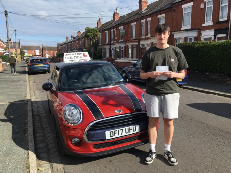 I had my first lesson just a week after my 17th birthday so I was a bit nervous to start with but Kevin quickly put me at ease and from the first lesson I really enjoyed driving with Kevin. The MINI was a great car to learn in, really easy to drive and I felt very safe and comfortable. Kevin was very thorough and patient and I progressed at a pace that suited me and alllowed me to build my driving skills and confidence. When I took my test I felt really well prepared and confident and thanks to Kevin's fantastic tuition I passed first time and I am now loving driving! I would definitely recommend Kevin to anyone wanting to learn to drive.