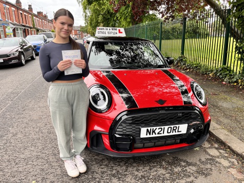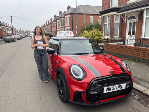 I've had an amazing experience learning to drive with Learn in a MINI, passing first time with only 3 minors! I was really put at ease and never made to feel rushed or pressured when not understanding things. Kev was calm and patient in all my lessons & always gave me constructive feedback, allowing me to know which areas needed practice. Kev has been great company and the lessons were always fun yet professional & I always looked forward to them. His high standard of teaching always meant he was going above and beyond which really sets him aside from other instructors! I've been taught some invaluable skills that weren't even necessary for the test but have made me an even safer driver now! I would recommend Kev to anyone learning to drive, he is the reason my brother and I both passed first time. Thanks Kev!!